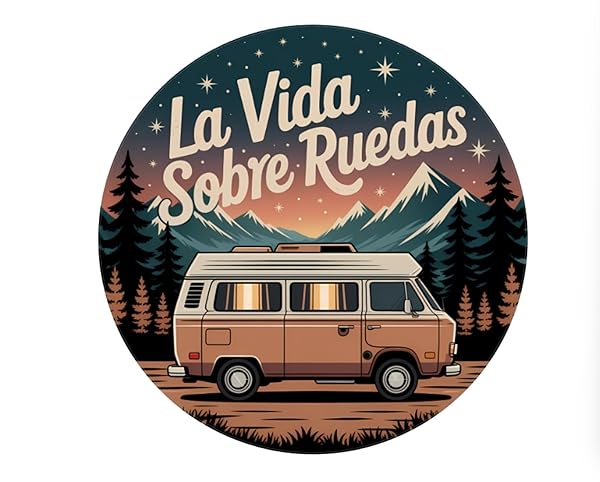 Pegatina Furgoneta Camper “La Vida Sobre Ruedas” – Vinilo Adhesivo Redondo – Sticker para Campervan – Impermeable, Exterior, Tintas Ecosolventes – Estilo Viaje y Libertad